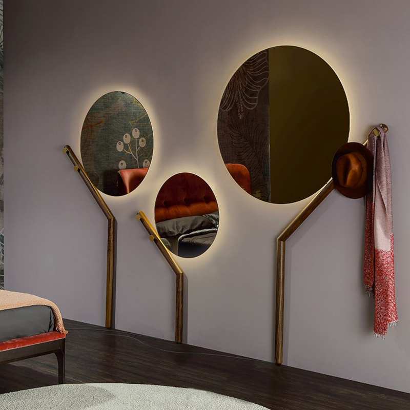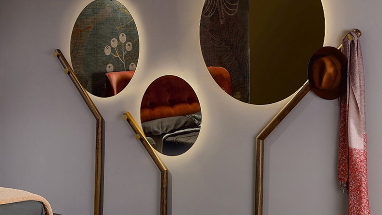 Multifunctionality and minimalism are the concepts expressed by Family mirrors. Mirrors that combine an agile, solid structure, a nordic coat hanger, and simple and round glass. A unique geometry that is completed by LED lighting system at the back, that provides a distinct, elegant and precious effect.