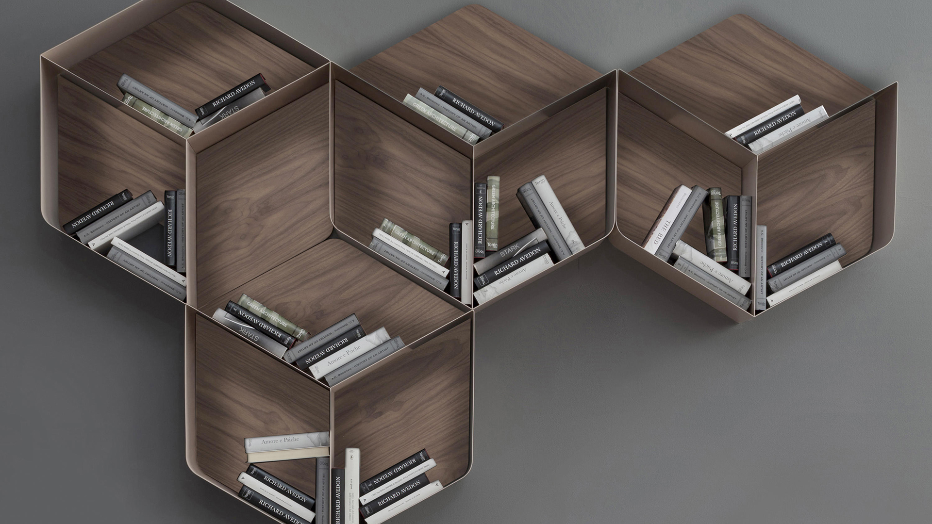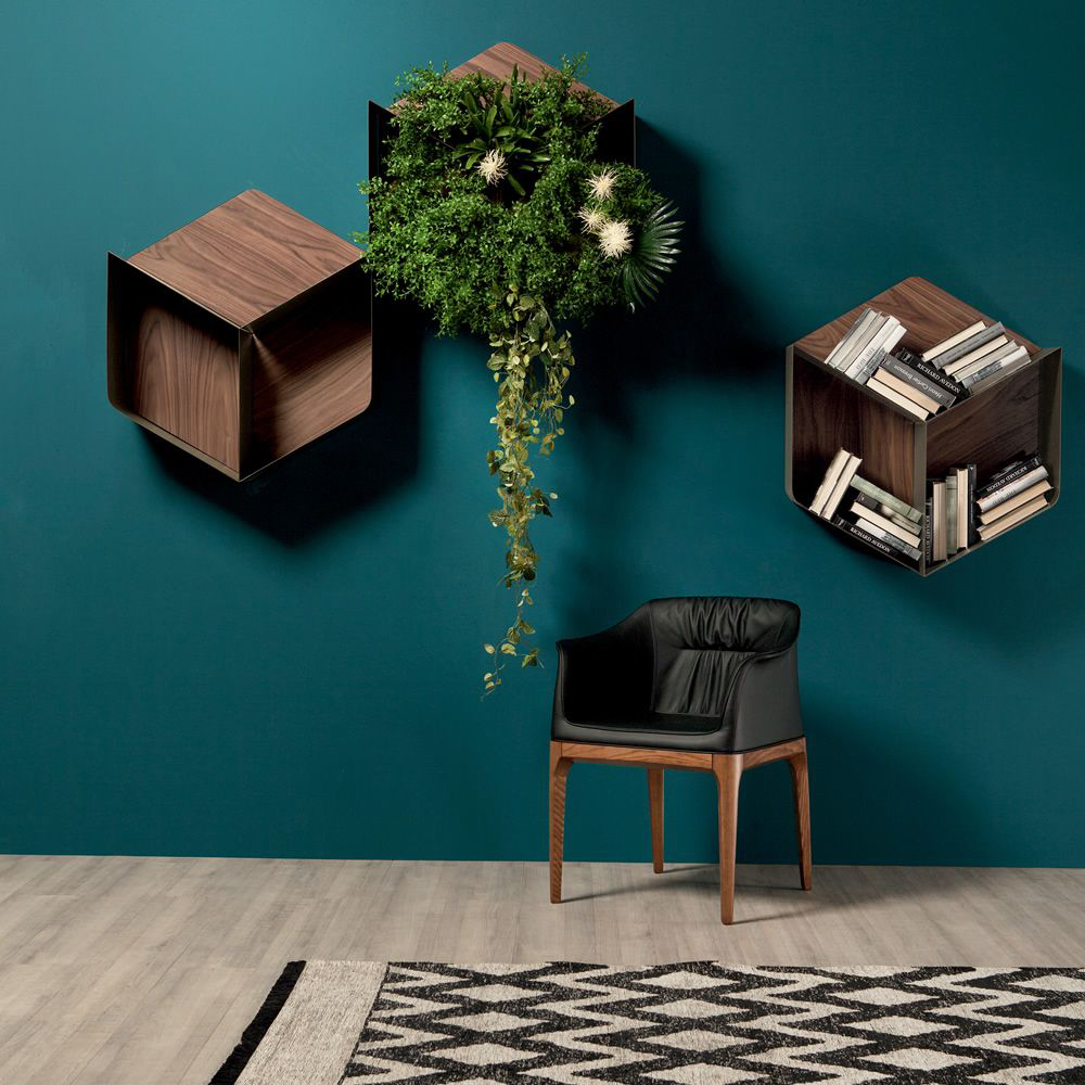 Islands, metal and wood cubes nearing and melting, to create a continent-library that can host books and various objects. Pangea is developed in modules, which means it can occupy a whole wall, or be its icing on the cake, following your very own taste and balance.