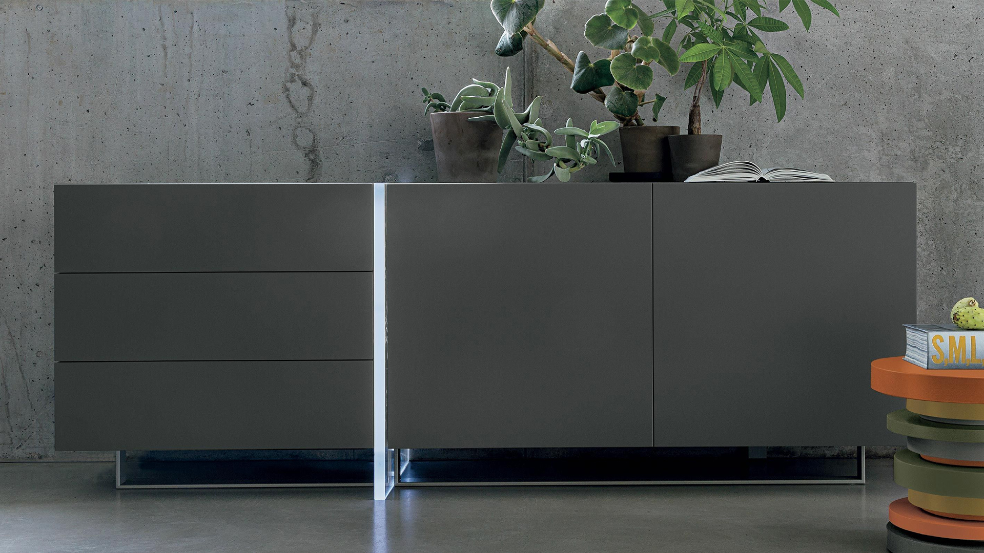 The LED technology offers a novel take on classic home furnishings: in the MADISON sideboard, the coloured light detail highlights the design of this timeless item, shifting from magenta to cyan to green to create special effects in perfect harmony with both living and bedroom areas.