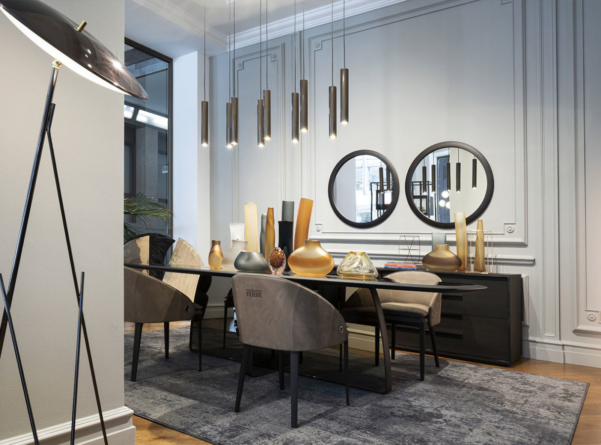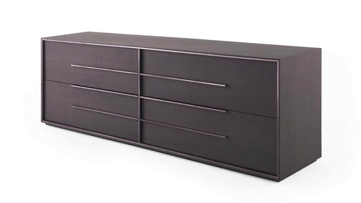 A functional element with a high aesthetic and semantic value, in line with the eclectic spirit that permeates Gianfranco Ferré Home collection, the New Orleans sideboard winks at the world of music by offering its tribute to the capital of Jazz. The black chromed profiles emphasize the volume of the structure in fine Tay wood dyed Smokey Grey, creating a design that recalls the keyboard of a musical instrument.