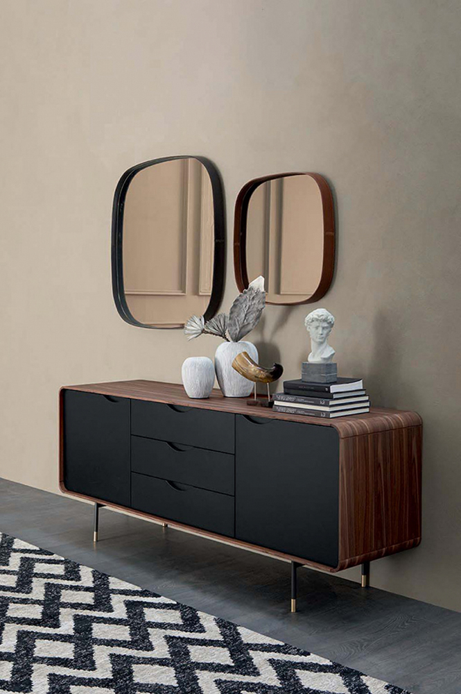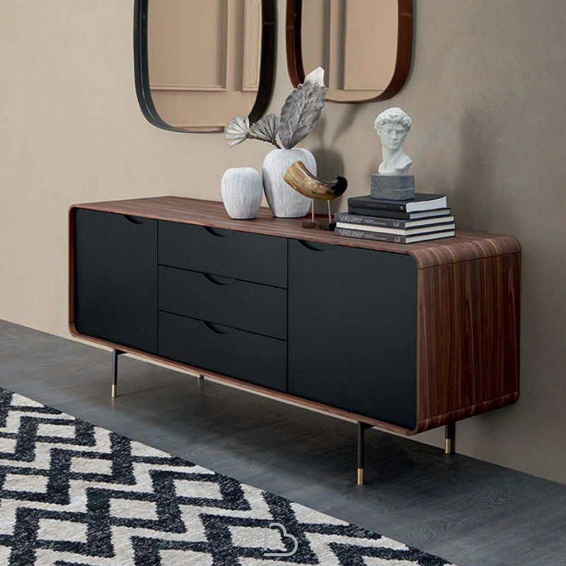 An all-round design where curved wood welcomes lacquered doors and drawers. The details make the difference and make it unique and suitable for your living.