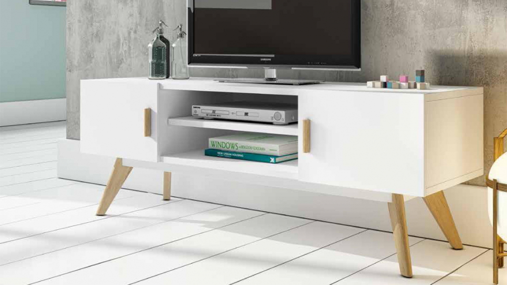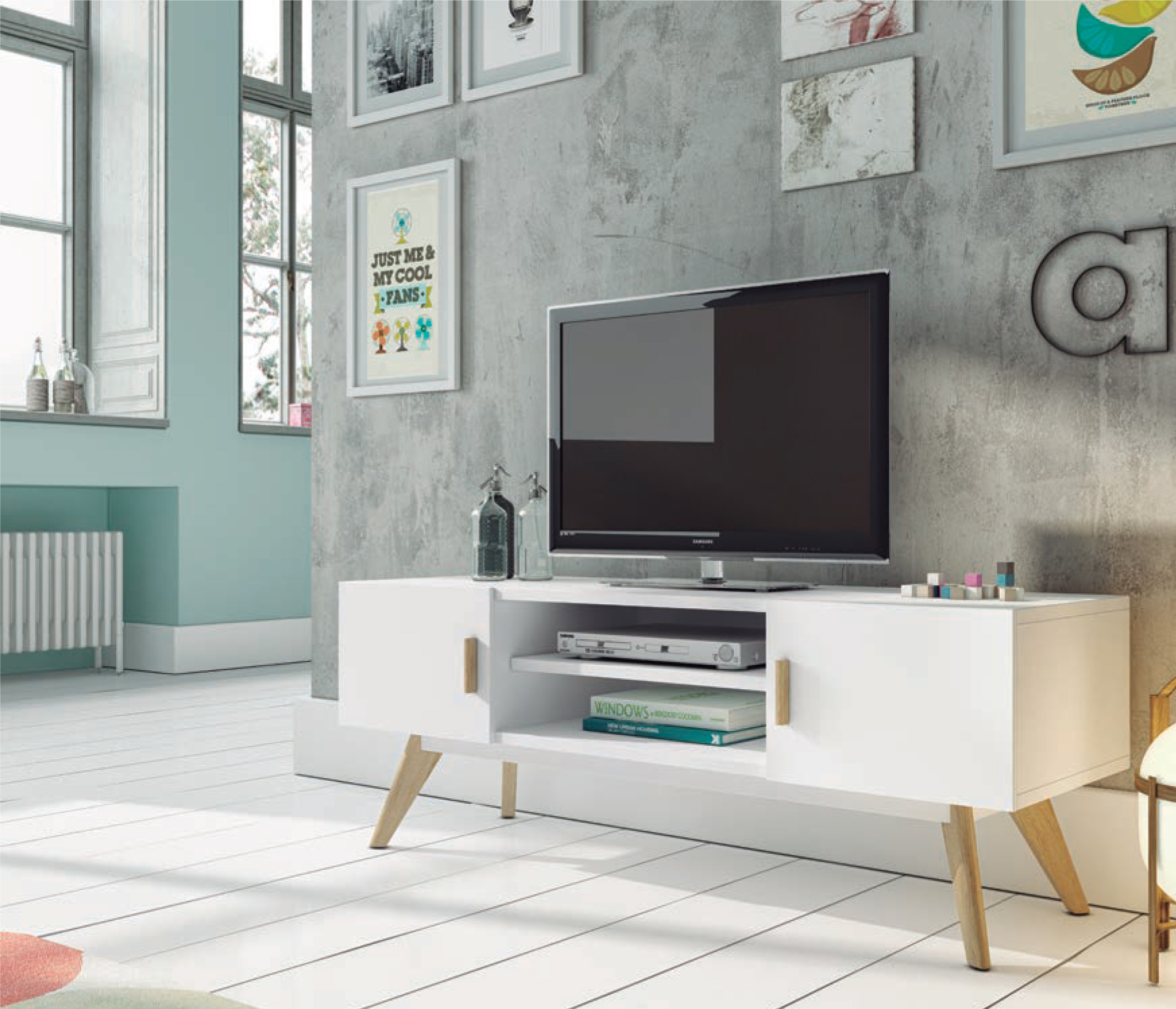 Wooden lacquered TV Table. 2 door, 2 shelves.