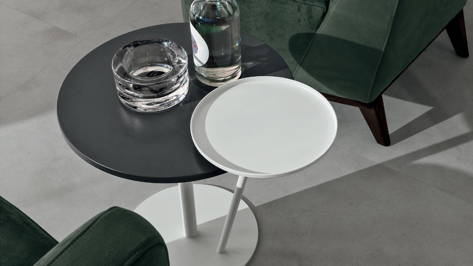 This model is an unusual and captivating coffee table characterized by the central metal leg and the two overlapping round tops, which recall the astronomical phenomenon from which it takes its name. Compact and functional, Eclisse is a lively and intriguing choice!