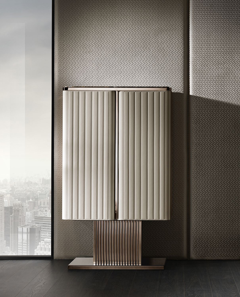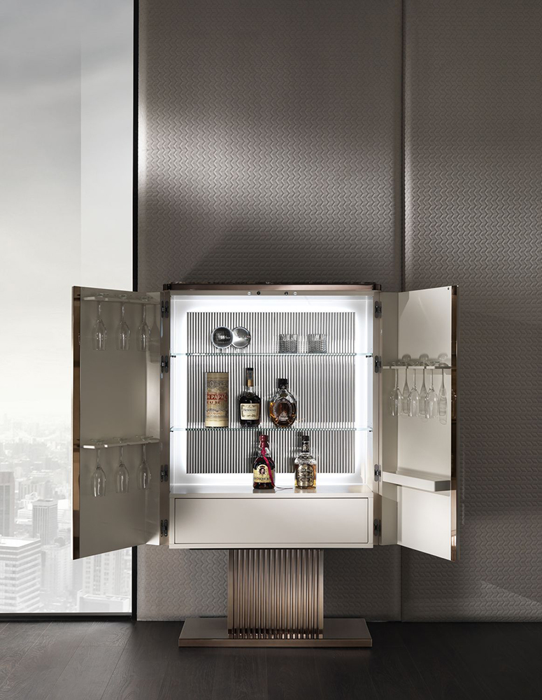 The Elite Bar maintains the concept of elegance inherent in the entire Elite furniture collection. A wide variety of materials are used in its decoration, some of which differ in their characteristics. The filling of the cabinet has transparent glass shelves, spacious drawers and comfortable interior lighting.