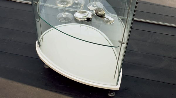 This showcase was made for those of you who are willing to extol both the case and what lays inside of it: curved glass and wood perfectly melt in Olivella, creating a combination of material and light. The empty spaces shine, thanks to the built-in LED light, and make this already refined showcase, even more elegant.