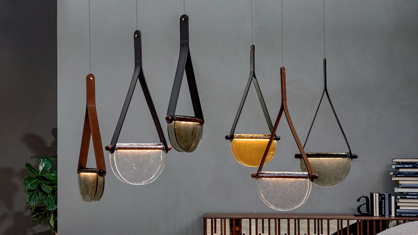 Like the watches by the great artist Dalì, the fused glass drips over solid oak wood stems with a recessed LED light. In the suspended version the extra touch is given by the real leather that supports it.