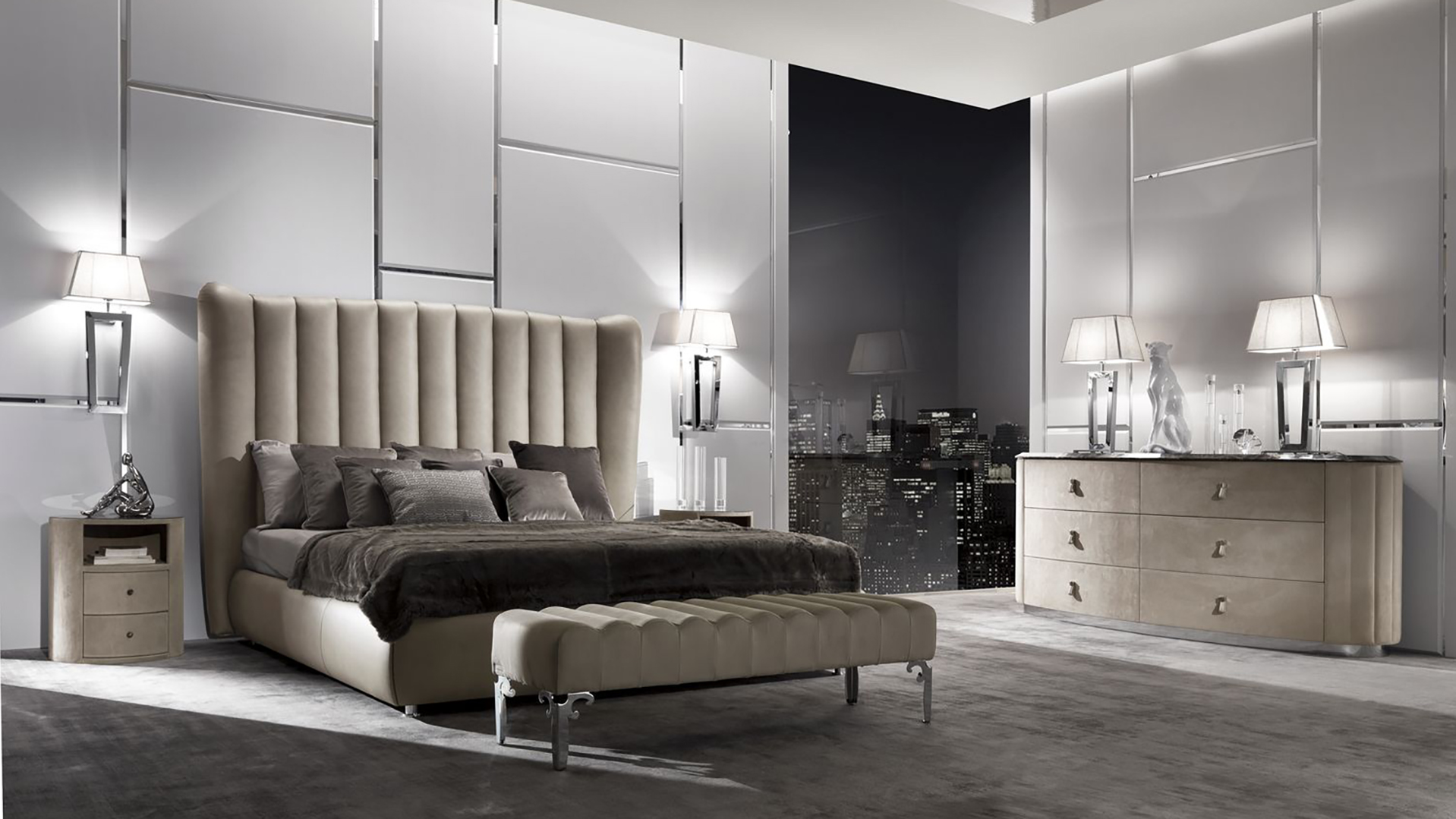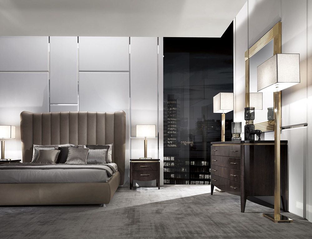 The Hermes bed is a double bed with an art deco upholstered headboard. Ideal for comfort. Available with or without lifting mechanism.