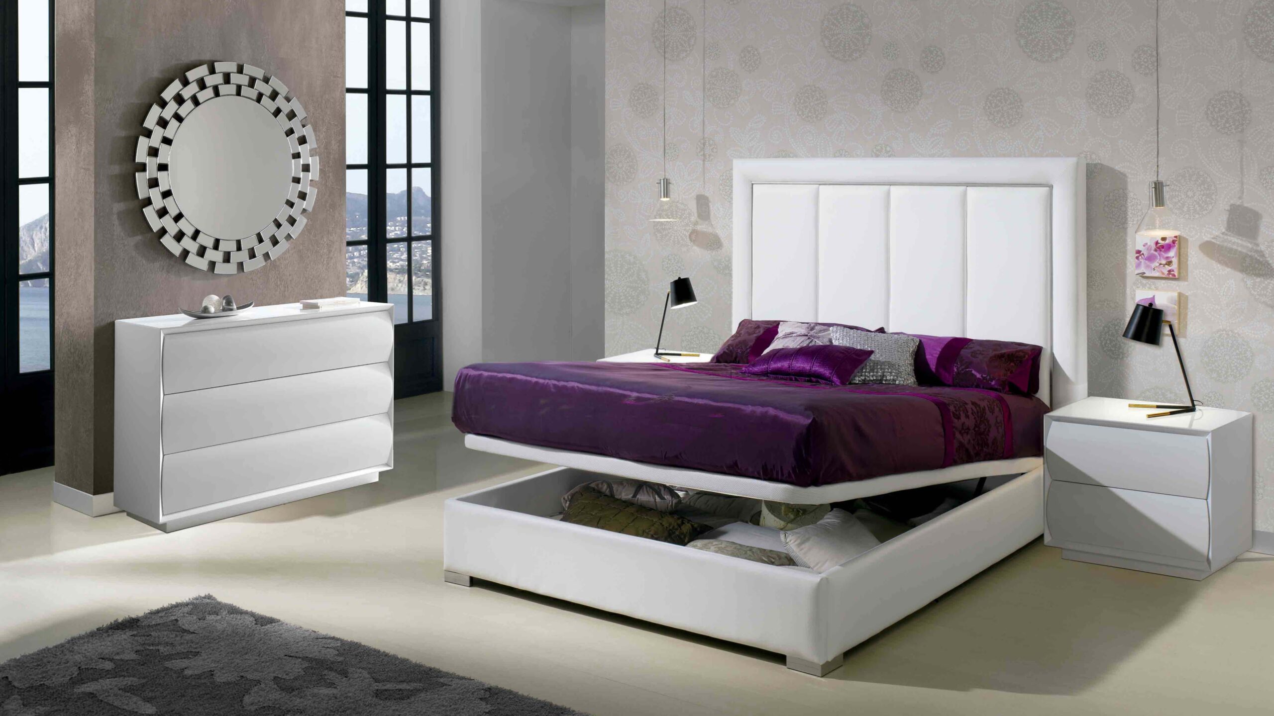 COMPLETE BED WITH STORAGE DIVAN AND GAS LIFTING MECHANISM.