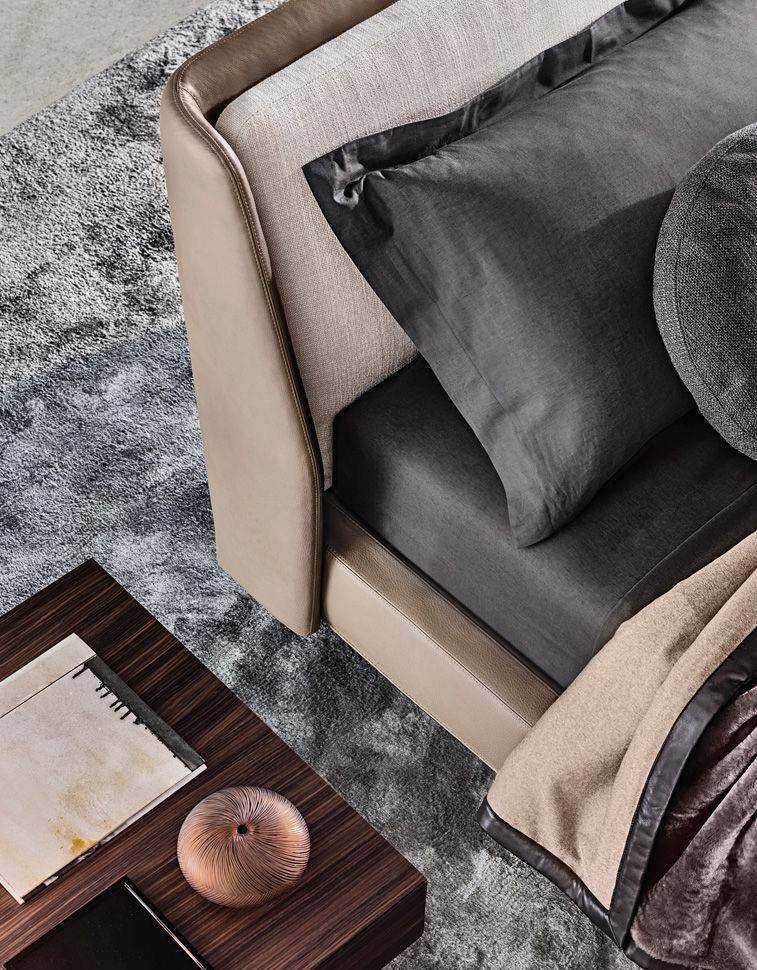 The Spencer bed has a universal personality that allows it to be confidently outfitted in any of the fabrics and leathers in the Minotti collection and to be integrated with style and discretion in any bedroom setting.