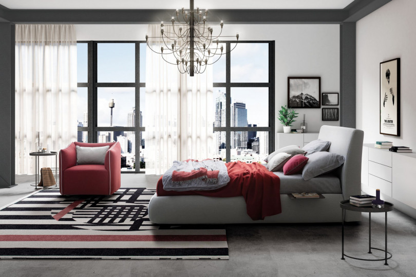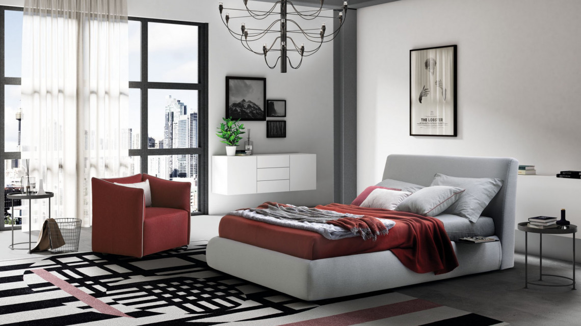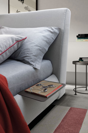 A bed that knows how to break the rules imposed by rigid structural geometries, where the line becomes a curve and the latter gives way to the presence of a flush seam. The modern texture of the upholstery fabric gives uniform elegance to the model.