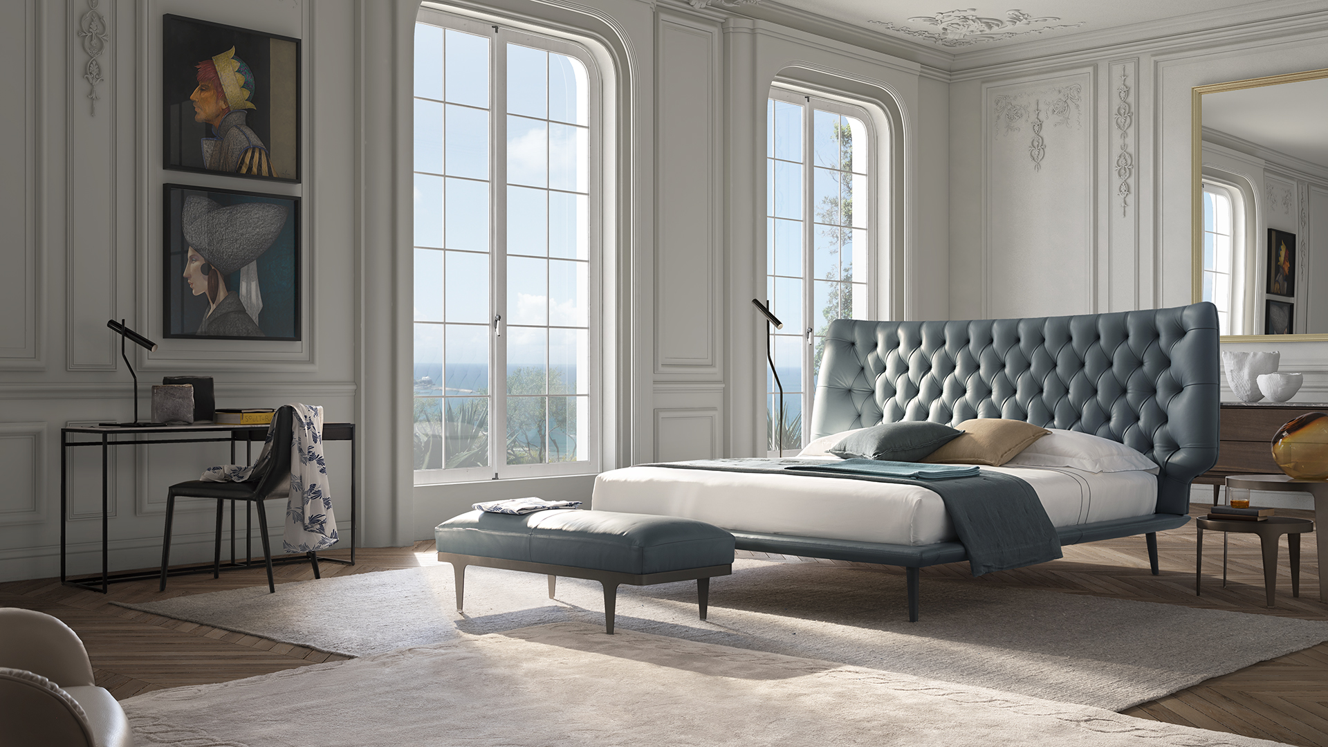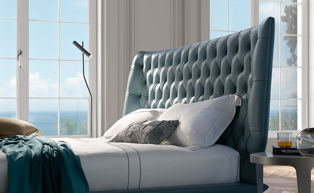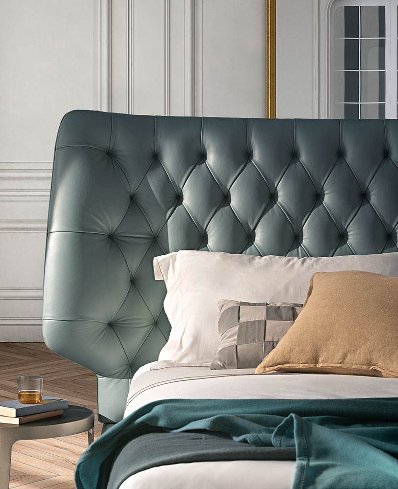 A glamorous vintage vibe and a supreme comfortable design beckons you to sink in and succumb to self-indulgence. Its large and lavishly elegant padded headboard brings to the fore the exquisiteness of the hand-tufting. Charcoal-grey metal feet thrust the bed up, giving it an airy elegance. This is a bed for a Natuzzi Italia night filled with Italian dreams.