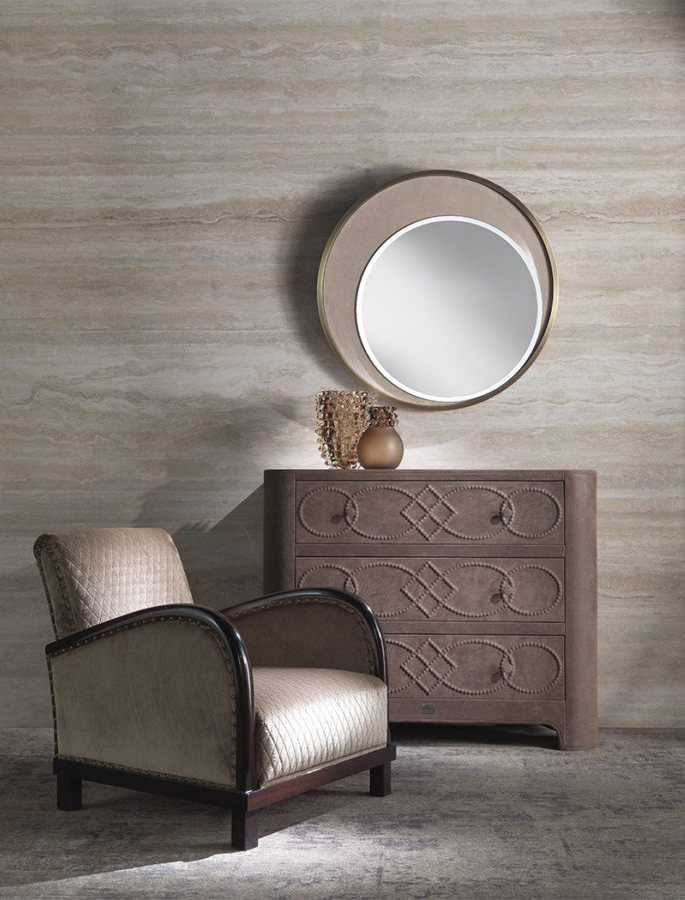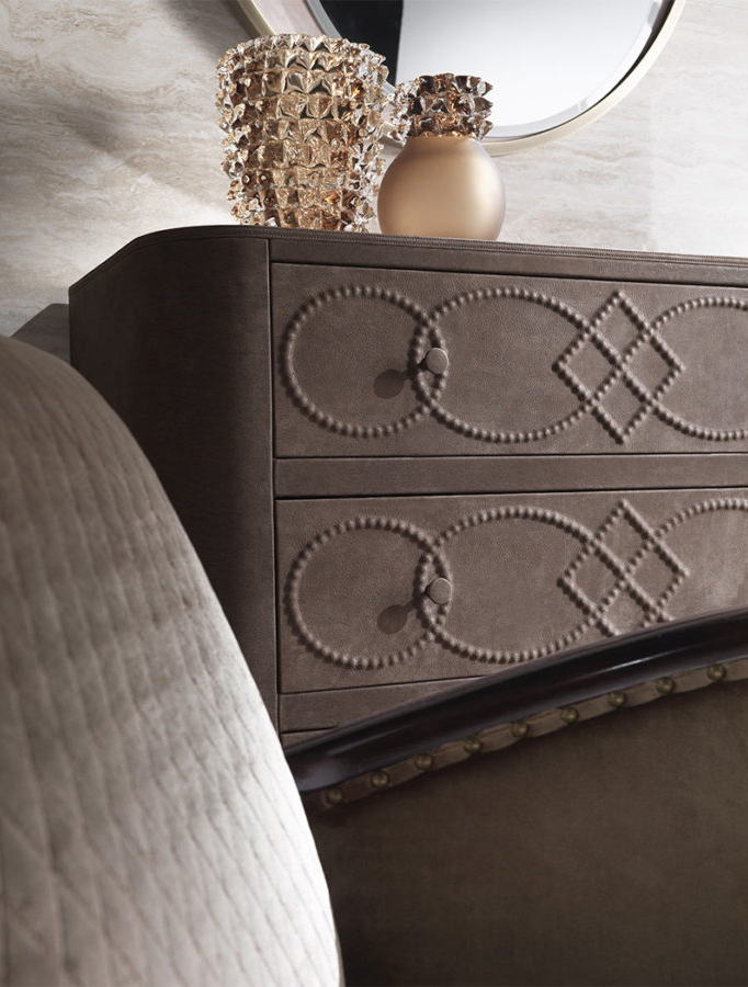 Elegance, functionality and design: the stylish personality of Infinity chest of drawer is at home in any setting, thanks to the decorative element on the drawers that add a touch of classical charm to the linear design and rigorous proportion of the table.
