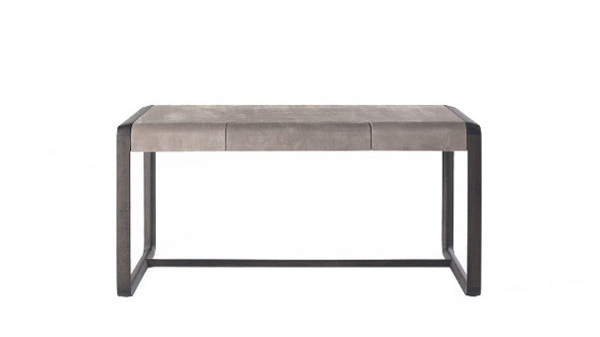 Elegant and functional, the Wynwood desk fascinates the viewer with its essential lines and refined charm. Made of solid beech wood dyed Smokey Grey, the desk is upholstered in soft nubuck for a comfortable and welcoming effect, while the slightly curved top lends it lightness.
