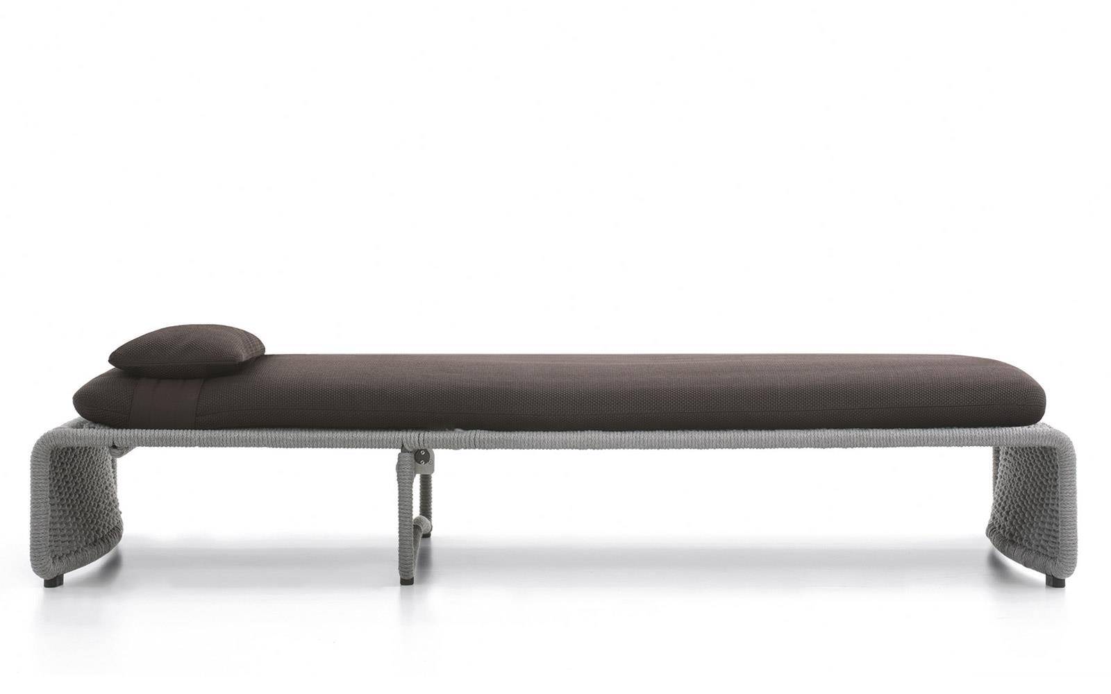 The Halley “Outdoor” collection also includes a daybed that is as elegant as it is comfortable. The structure is covered in cord in the following colors: Sand, Elephant Grey, Charcoal, Sunflower, Khaki Green and Rust. The cushions have internal padding in high resilience expanded polyurethane foam and are covered in water resistant fiber and fabric. Thanks to a mechanism designed and engineered by Minotti Studio, the Halley “Outdoor” daybed can be adjusted to four different reclining positions.