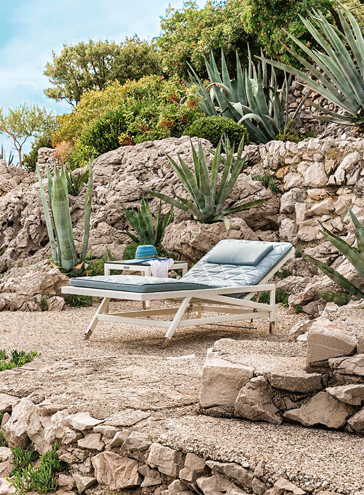 Lastly, this chaise longue can reflect your personal style. You can create a unique Panarea by choosing a different fabric for the cushions and the headrest. There are four fabrics available and sixteen nuances among which you can find yours.