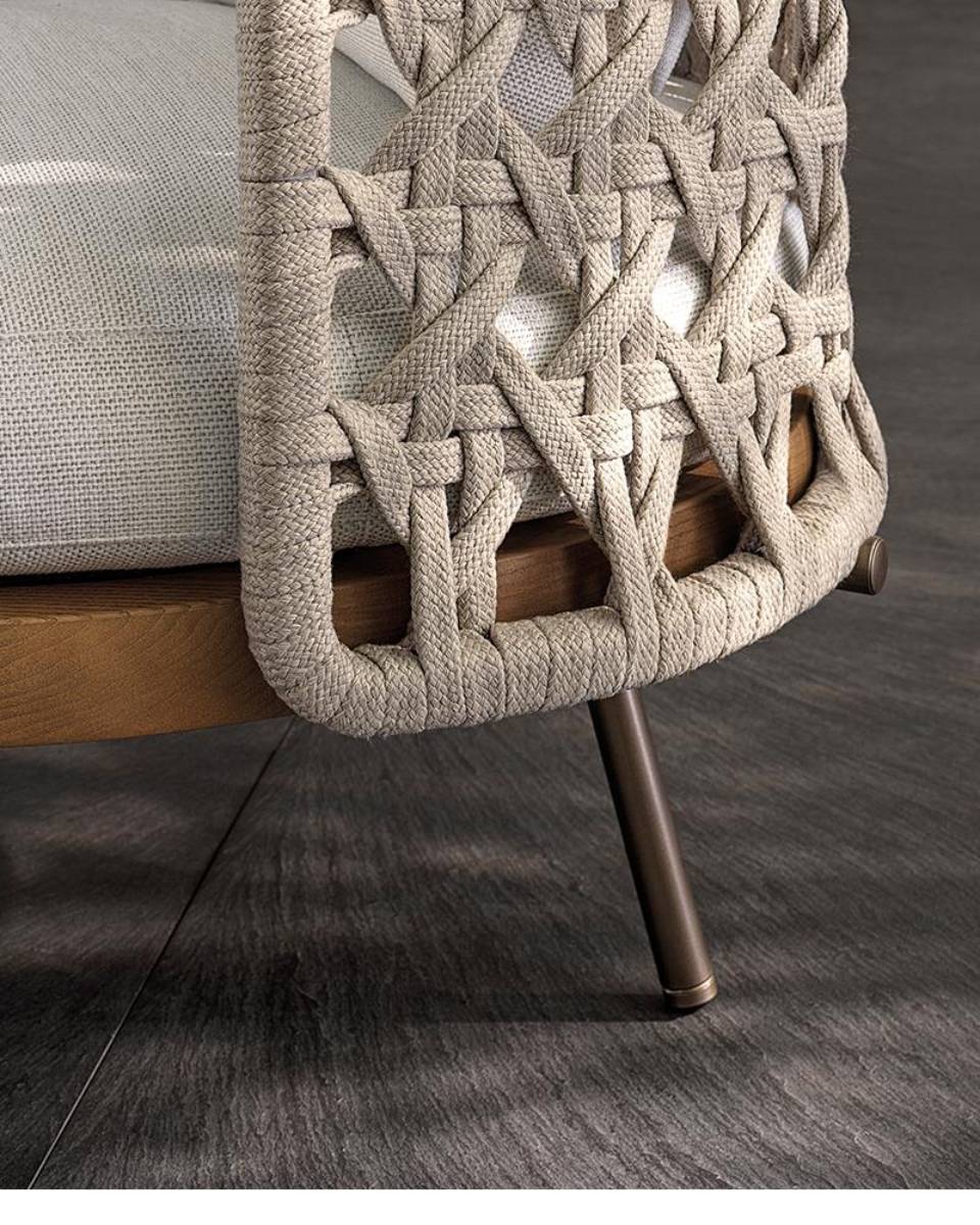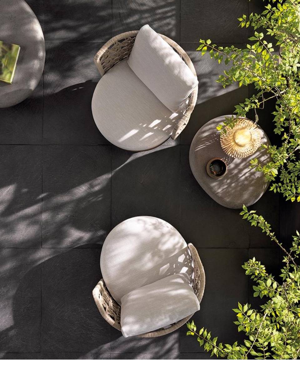 Designed for indoor environments in 2020, Torii Nest migrates to open-air living spaces, in the armchair, lounge and dining little armchairs versions. With structural details linked to Japanese tradition, the seats play with round edged volumes, thin profiles and the apparent formal simplicity of an extremely intricate design.
