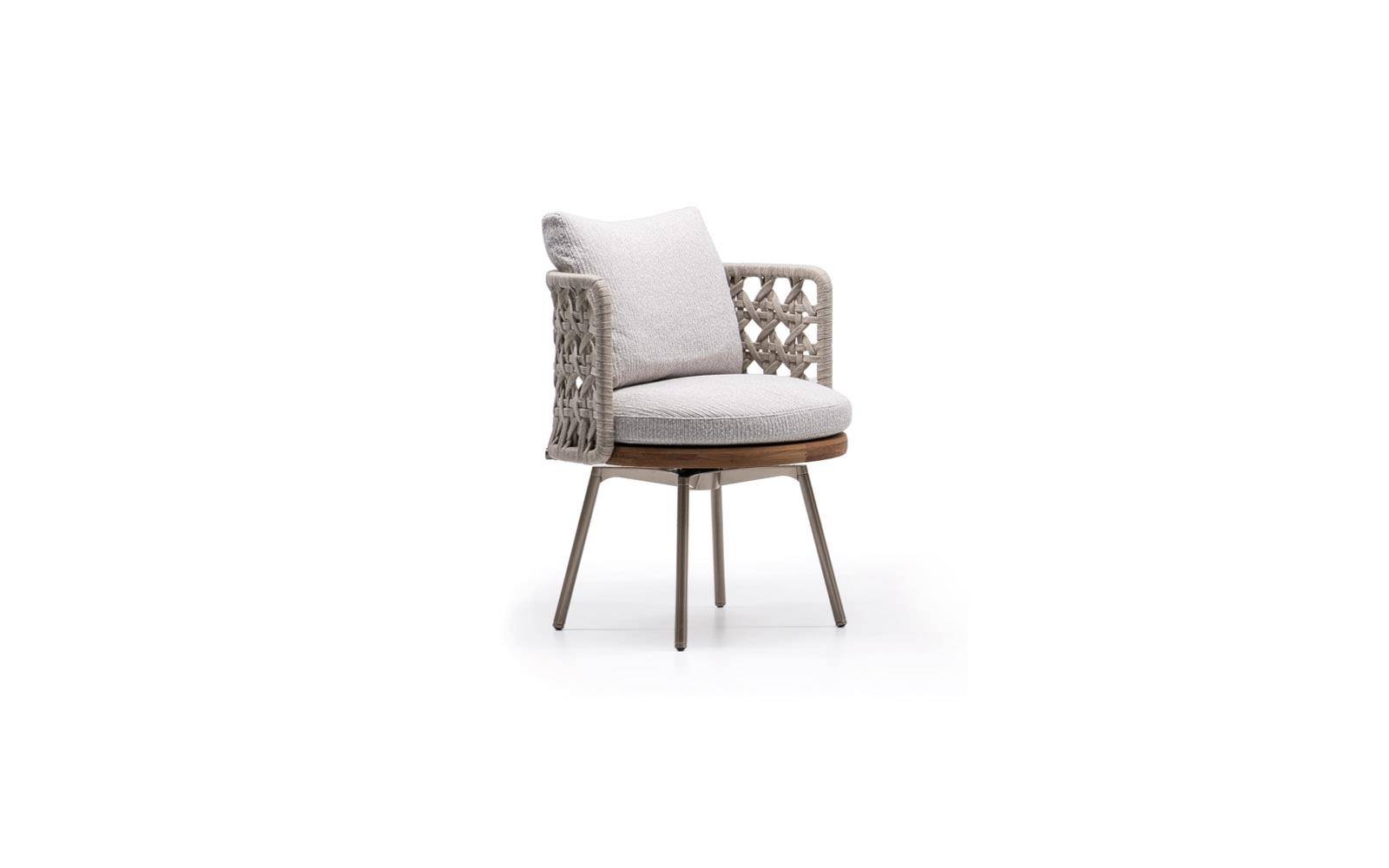 It sits on a base in natural teak or Dark Brown stained mahogany, supported by varnished aluminium legs with a polished, Bronze-coloured, anti-touch finish. With its backrest in the shape of a perfect circle, and a sophisticated visual lightness that embraces the padded seat, Torii Nest Outdoor was conceived to meet various requirements, in terms of both functionality and ergonomics.
