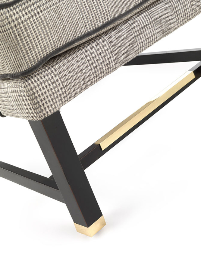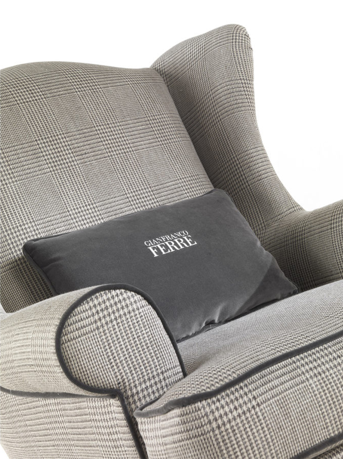 Sinuous lines, menswear fabrics and contrast piping: Ayla armchair tells the essence of the brand Gianfranco Ferré Home in a captivating mix made of British inspirations, classic details and contemporary elements, such as the brass details which liven up the base structure, which recalls the shape of classic chairs.