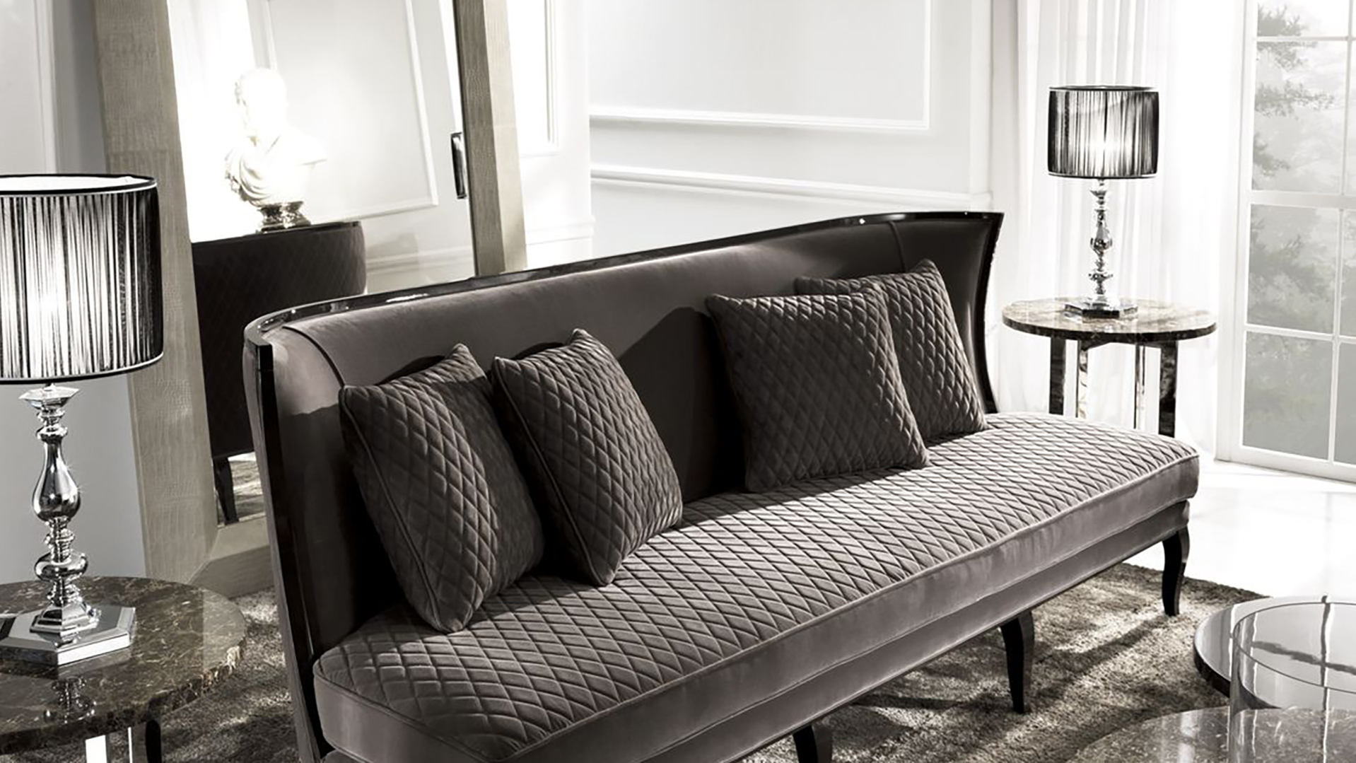Sofa with upholstered seat and back. Filling: polyurethane. The seat is decorated with quilted stitching. Other finishes and upholstery options are available.