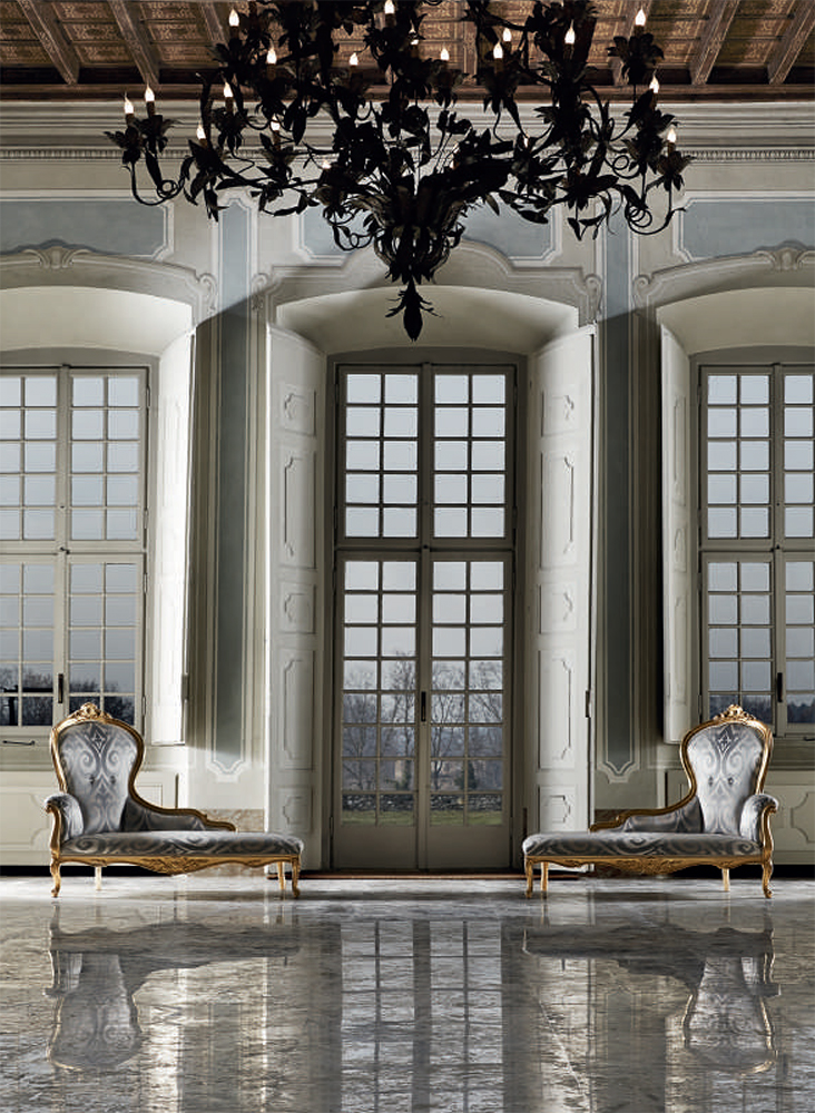 The couch Dormeuse, from the Italian manufacturer Silik. The model is made on a frame of wood. Upholstery this model - textile with floral designs. Decoration is the decorative carving handmade. Upholstery and trim to order in the manufacturer`s catalogue. The model is made in classic style.
