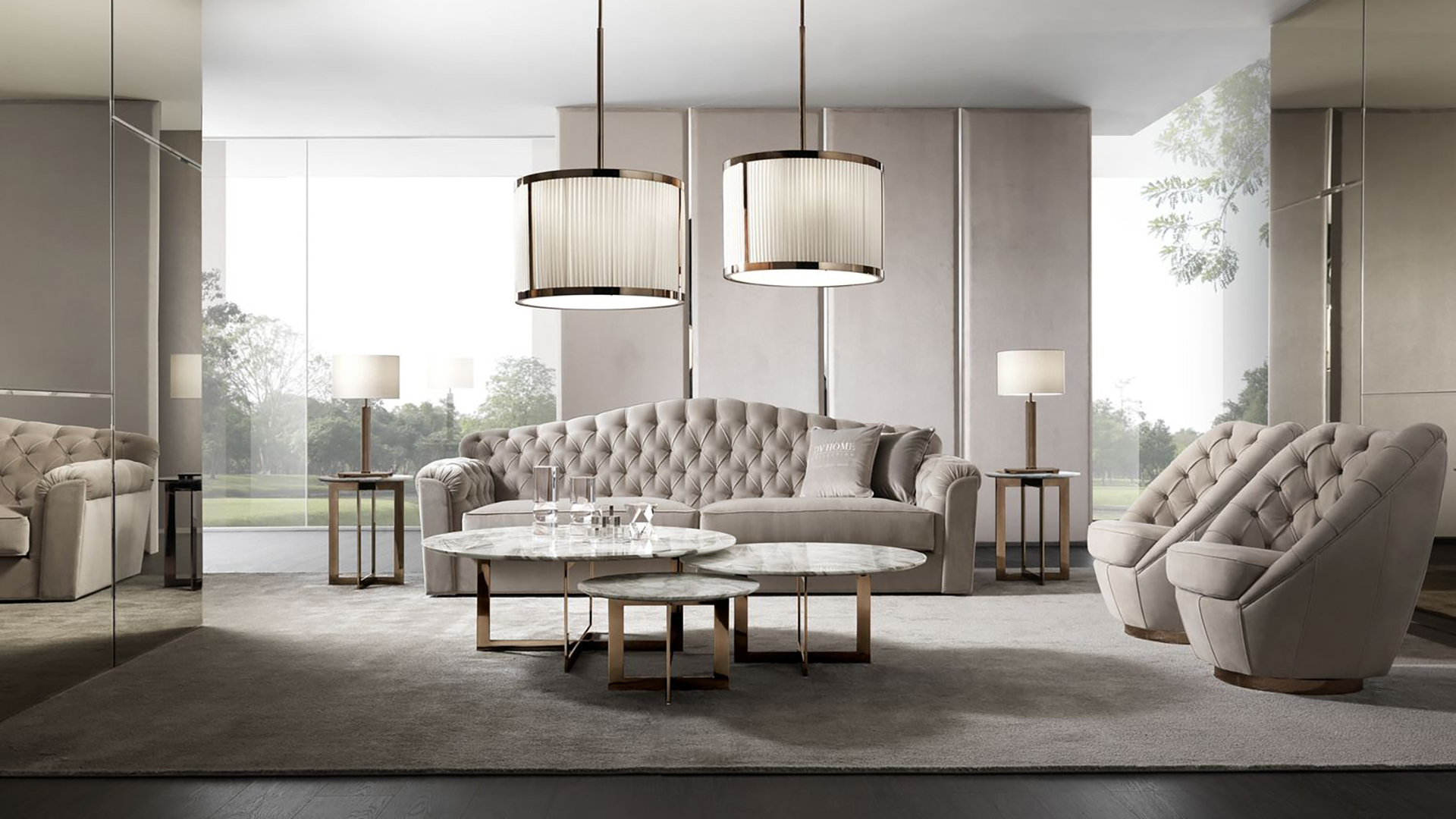 Sofa upholstered. The back and armrests are upholstered in capitonné technique. Filling: polyurethane. Other upholstery options are available.