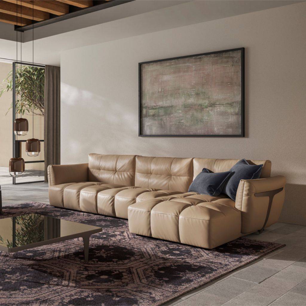 The Herman sofa is a harmonious and highly modular seating system that can be combined in various configurations adding dynamism and originality to the living area. Reminiscent of a fish tail, the external metal support that embraces and clasps the backrest and seat is a standout feature on this piece.