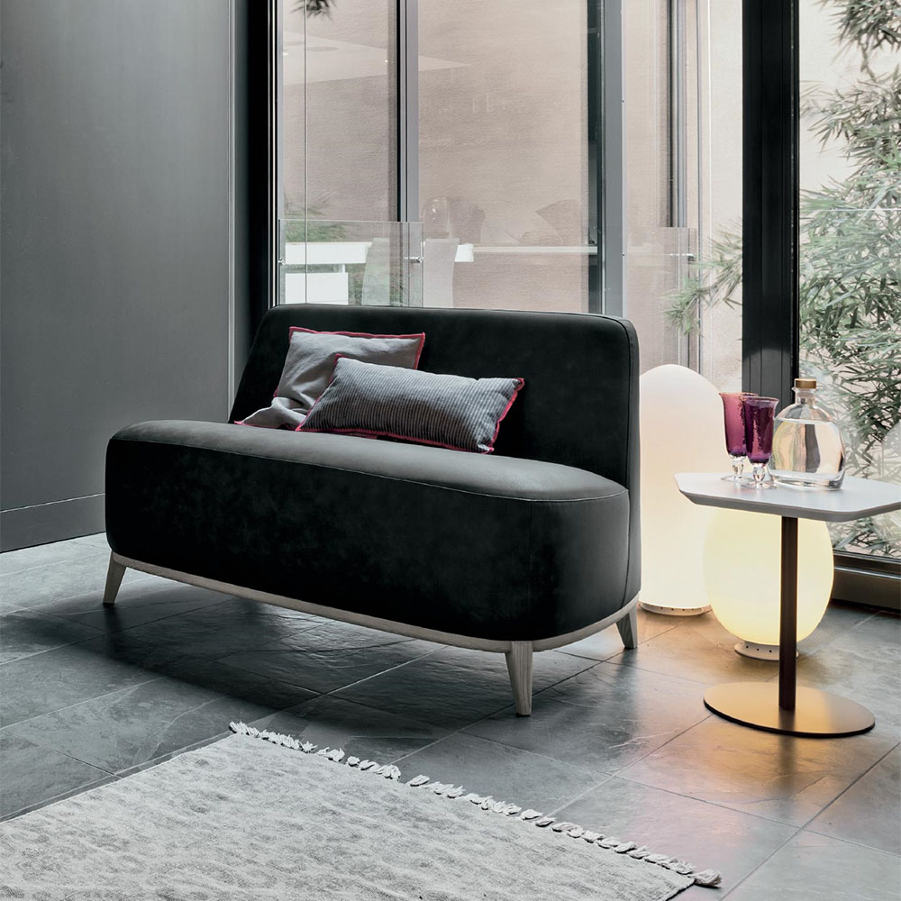 Loft is a small sofa with compact dimensions that conquers for its soft lines and its retro-inspired design, enhanced by the oblique wooden feet! Simple and versatile, the sofa can be combined with the armchair and small armchair of the homonymous collection!