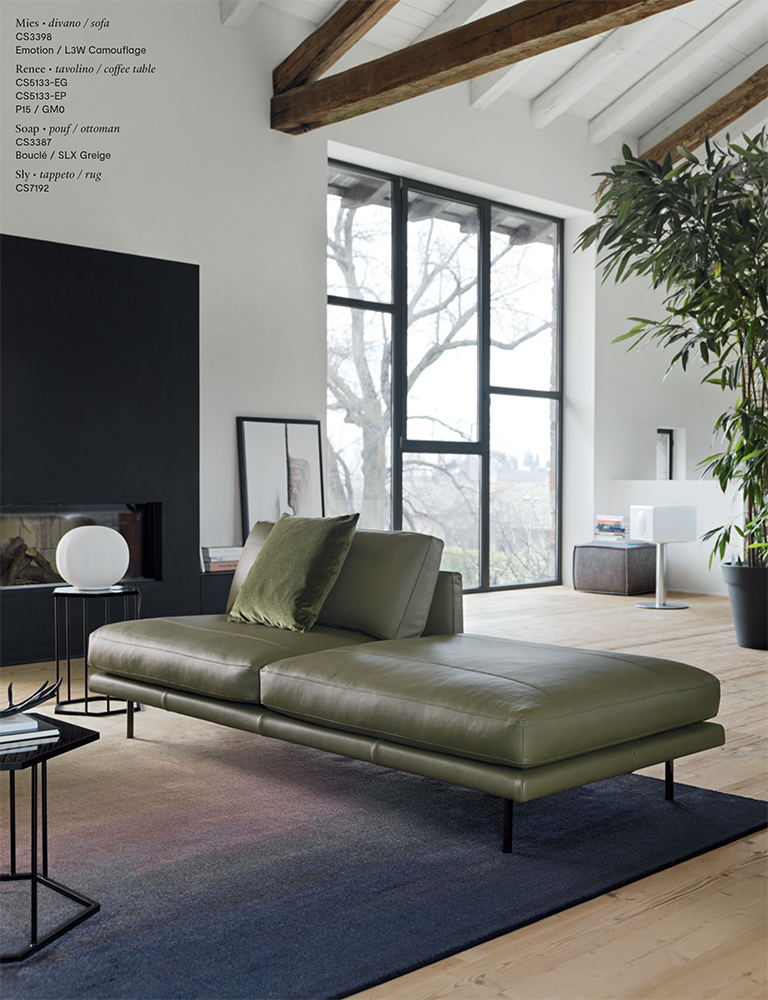Contemporary stylishness and supreme comfort, this fixed or modular Mies sofa has deep inviting seat cushions that beckon you to sink in and relax.