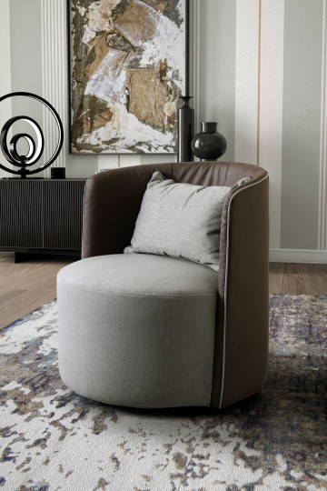 By joining the robust roundedness of a soft pouf with the embracing resolve of a gently padded back, it is possible to appreciate how such an overlooked article may suddenly be transformed into a distinguished piece of furniture. With its structural autonomy, this chair aims to combine volumes and experiment with their possibilities, thus achieving unexpected creative outcomes.