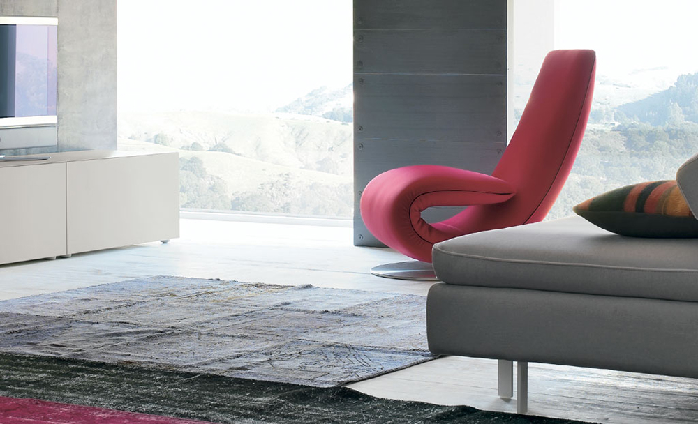 Ricciolo is an armchair, a chaise-longue, a product that can make every room unique. The patented folding mechanism is what makes this curly seat a must. Different upholsteries are available, such as leather, eco-leather, grain leather and Orchidea elastic fabric.