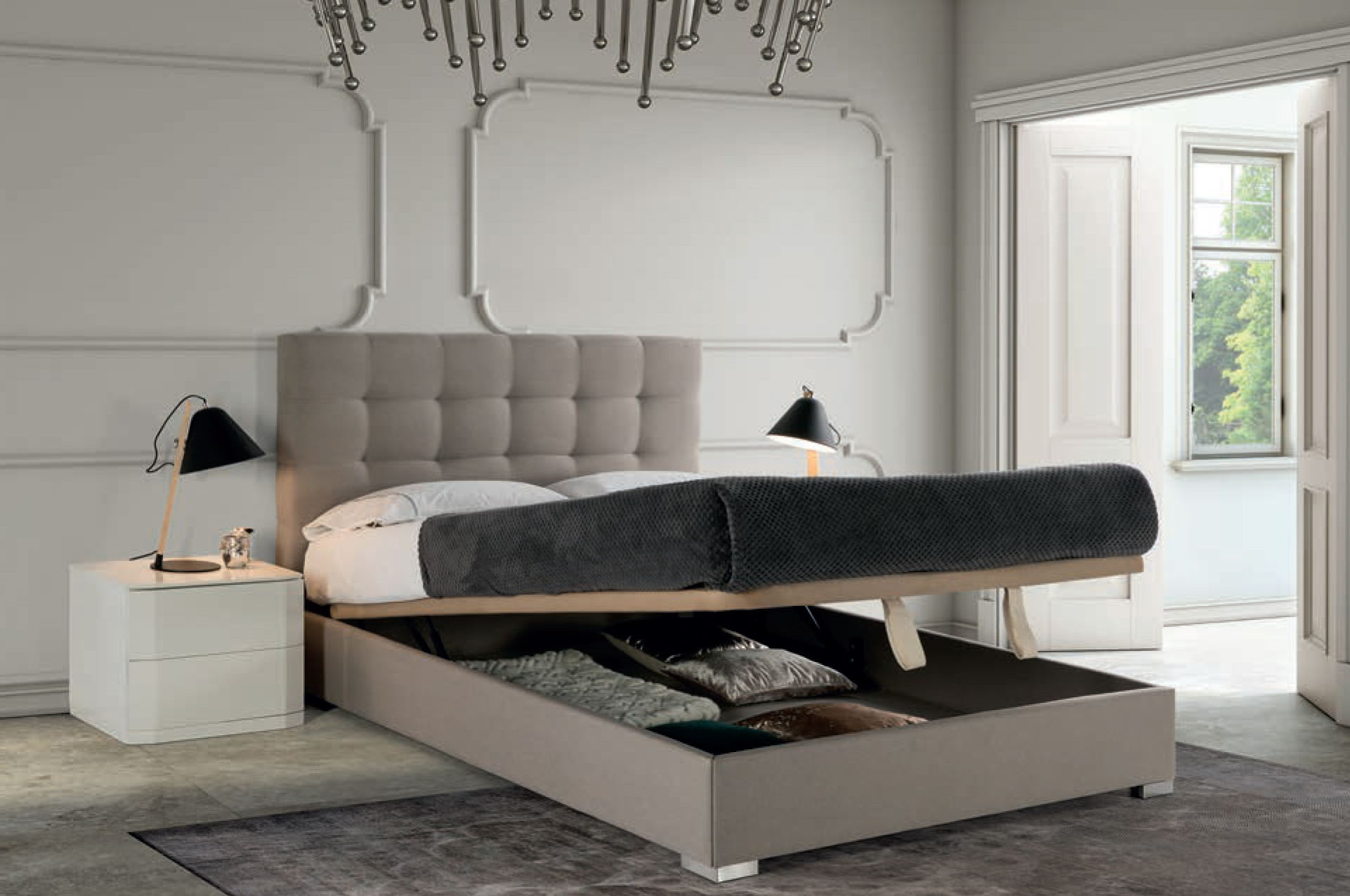 • սպիտակեղենի դարակ և բարձրացնող մեխանիզմ։