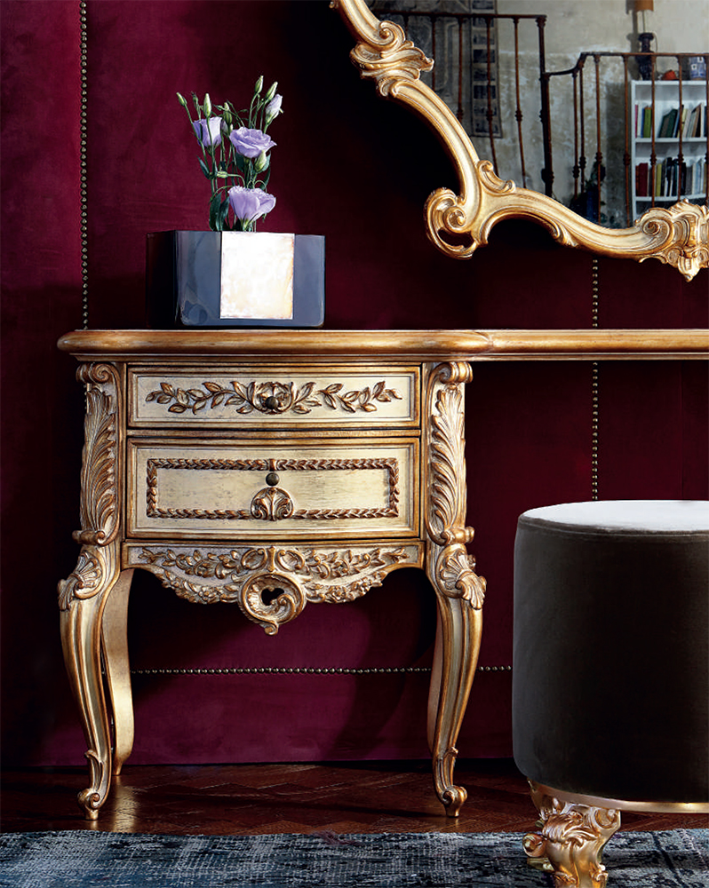 Զարդասեղան չորս դարակով, փայտյա սեղանածածկով և ապակիով։ Հնարավոր են տարբեր լուծումներ։