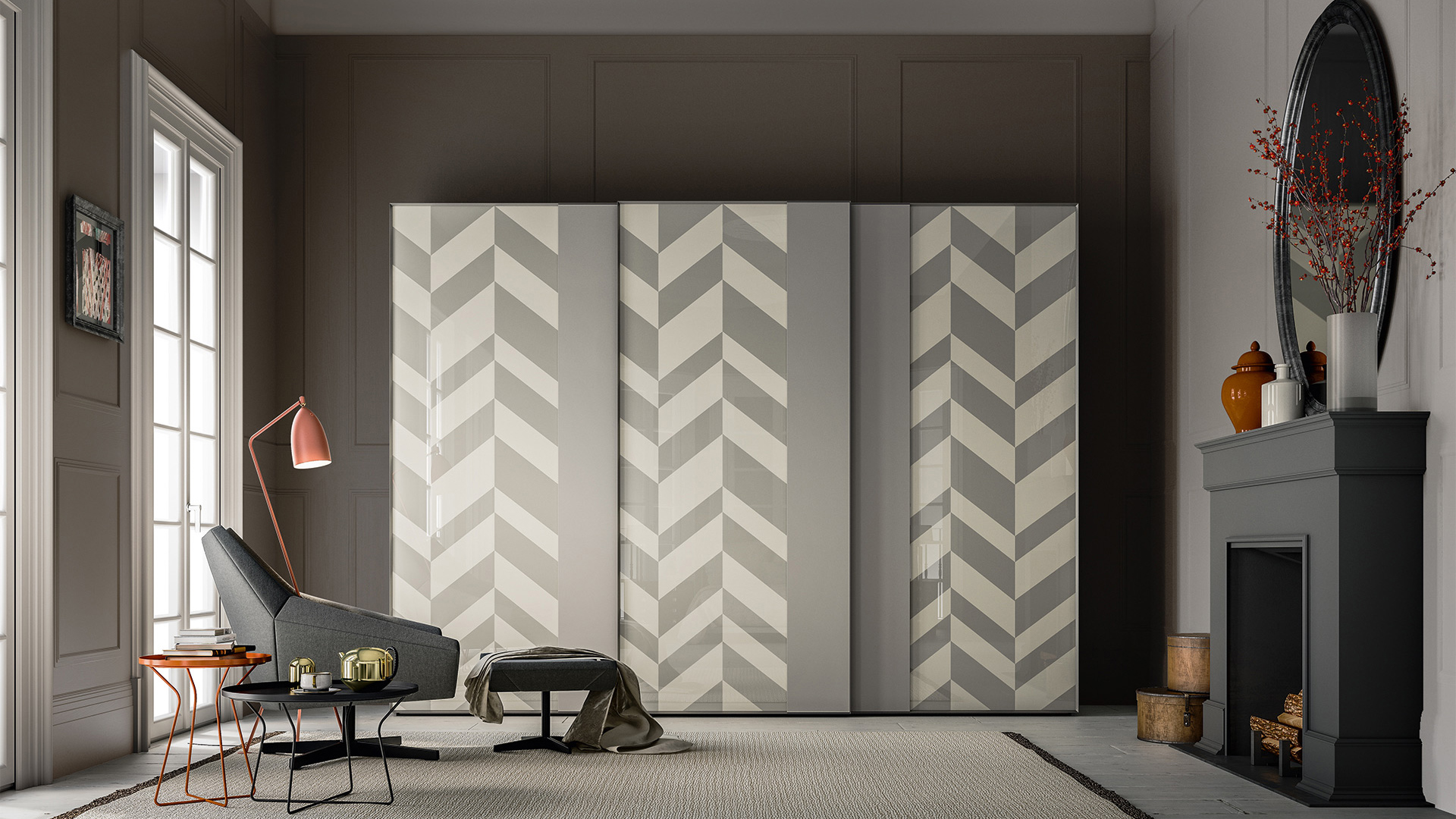 Frame զգեստապահարանը սահող դռնով և ներկառուցված շերտավարագույրով անփոխարինելի աքսեսուար է ֆունկցիոնալ սենյակում։ Այն լրացնում է հանգստի սենյակը՝ օպտիմալացնելով և զարդարերով տարածքը։ Առկա են  բազմաթիվ գունային տարբերակներ ինչպես ֆասադների, այնպես էլ ինտերիերի համար: