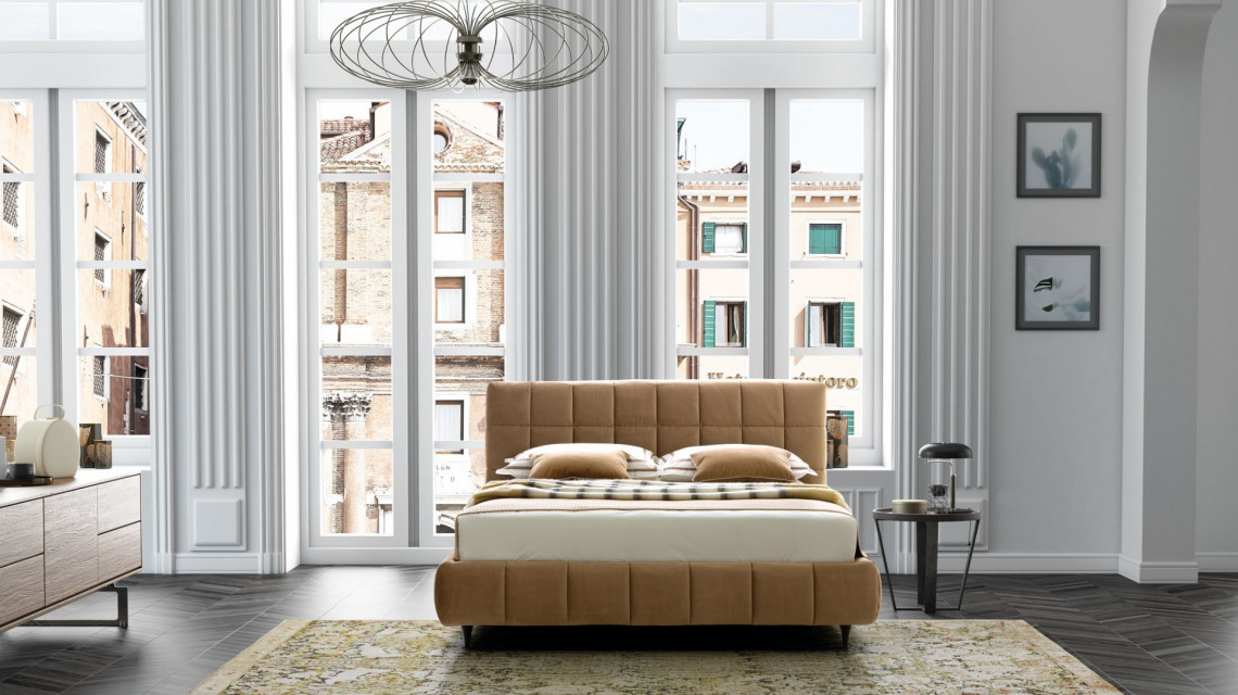 Он бескомпромиссен из-за единообразия линий швов, которые соединяют стеганные детали. Это Orazio, кровать, которая соблюдает классические правила, представленные обволакивающим прессованием ее набивки, но она также открыта интерпретационным инновациям современного структурного дизайна со всем его минимализмом и находчивостью.