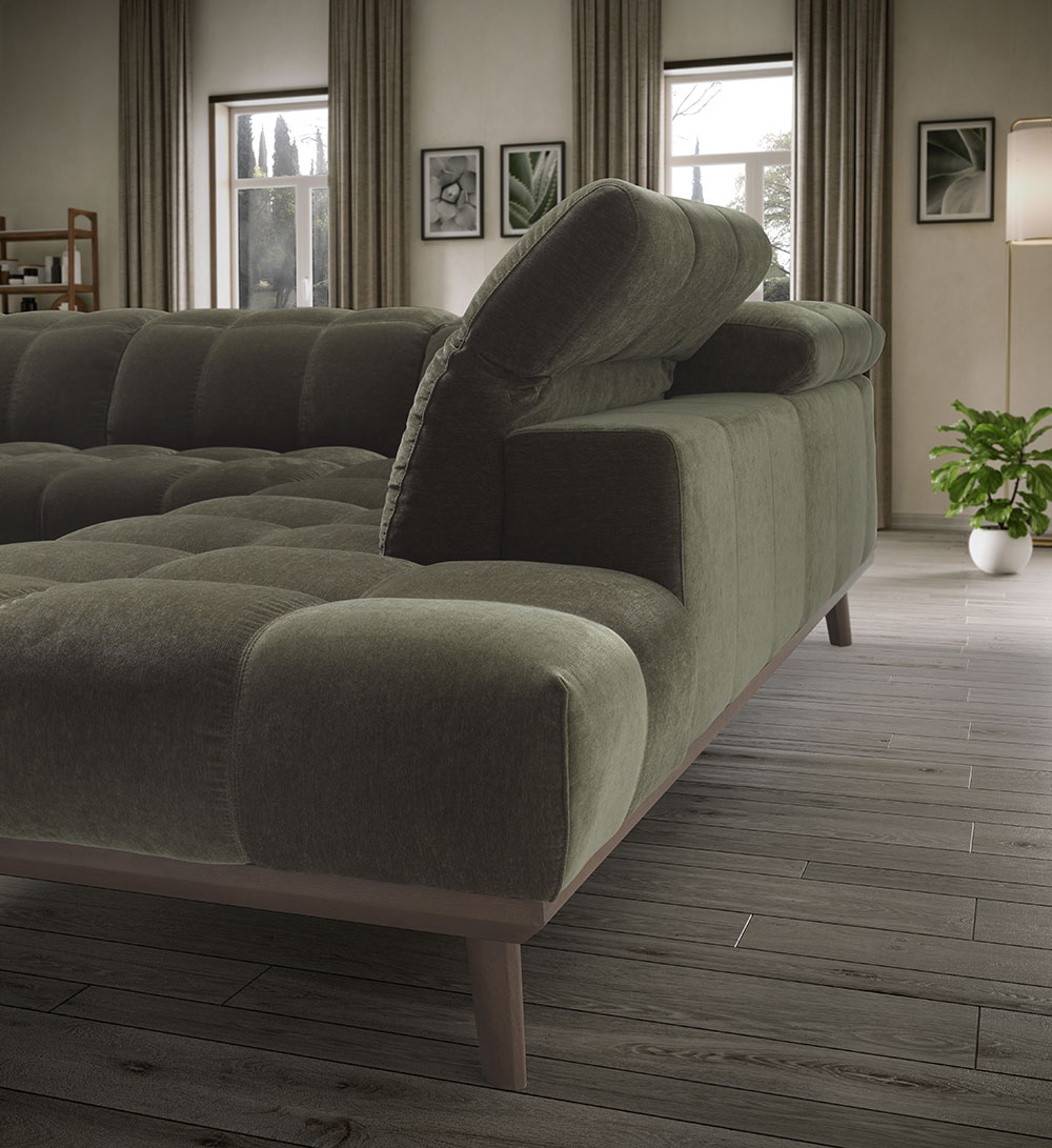 Когда дизайн содержит в себе комфорт. Все в этой модели продумано до мелочей, чтобы подчеркнуть ее главную характеристику: непревзойденный комфорт. Он имеет большое мягкое сиденье со стеганой спинкой и регулируемым вручную подголовником. Диван опирается на деревянную основу, поддерживаемую элегантными ножками, также изготовленными из дерева.