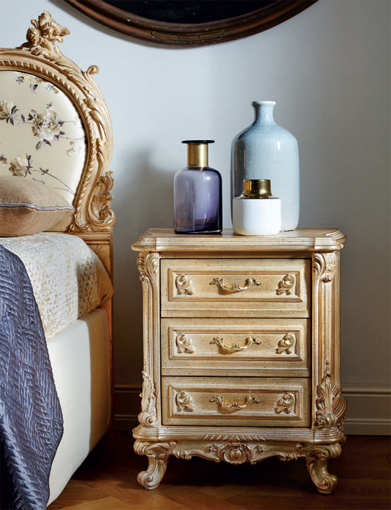 У тумбочки Larissa традиционная отделка с утонченной резьбой. Прикроватная тумба ― обязательный атрибут спальной комнаты. Несмотря на скромность функций, круг ее обязанностей довольно широк. Это и небольшая система хранения, и подставка для мелочей, и место для установки настольной лампы, и одно из основных украшений интерьера.