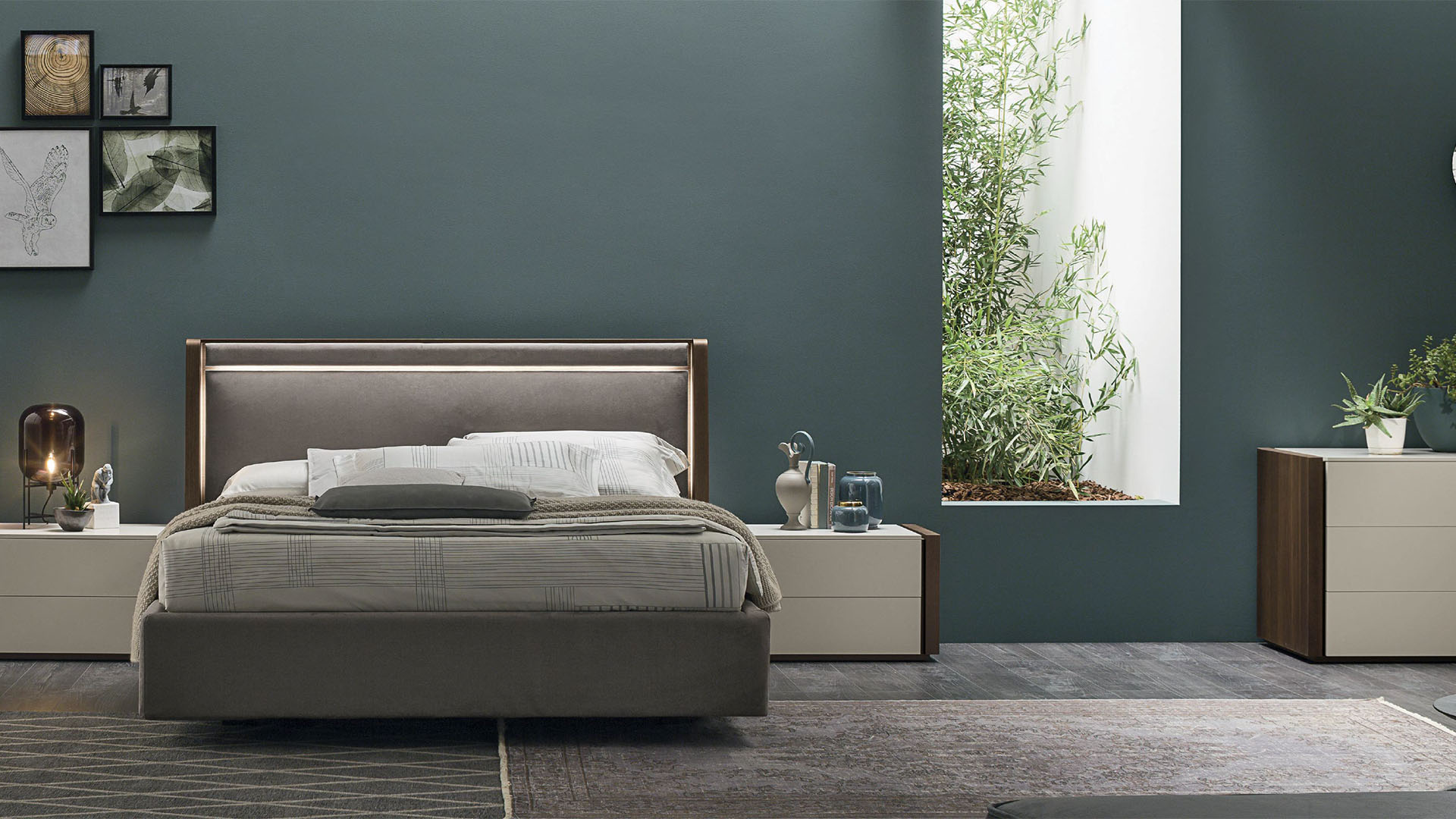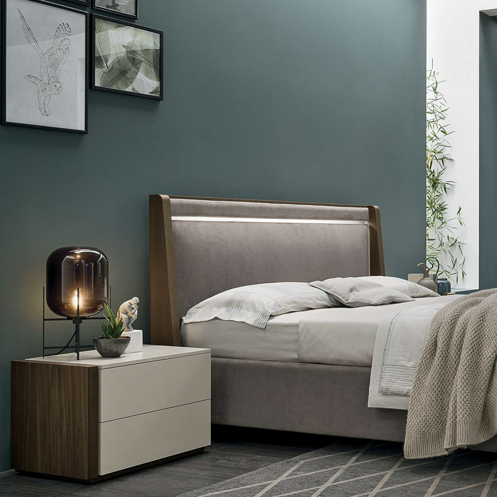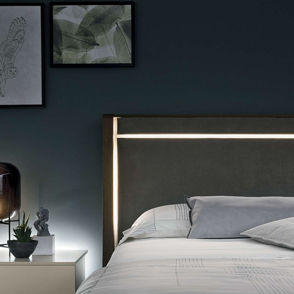 Дополнительным украшением изголовья становятся две световые прорези, придающие дизайну эффектность. Это полезное дополнение удобно для чтения и красиво смотрится в интерьере спальни. Оно создаёт мягкую атмосферу и очень пригодится в ночное время.