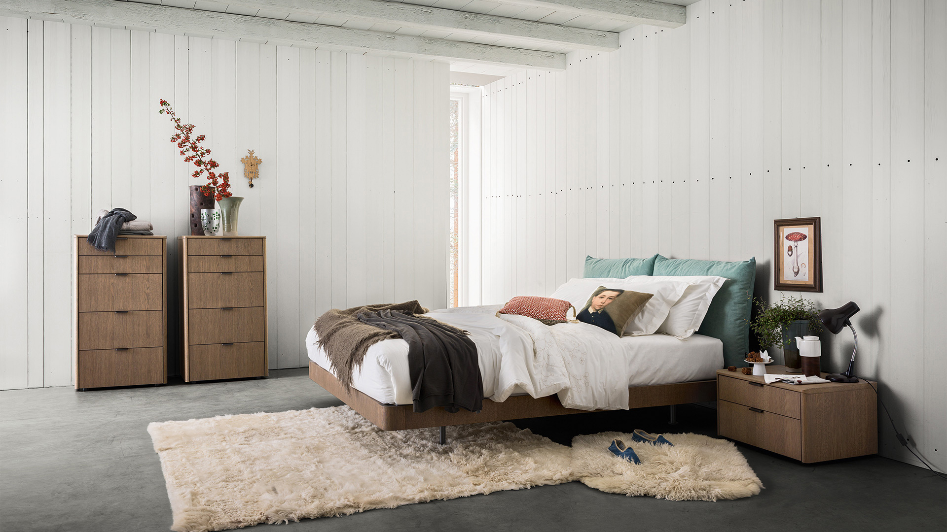 Мягкие стеганные подушки этой кровати превосходно сочетаются с изогнутыми краями и металлическими ножками. Cloud предлагает бесчисленное число вариантов обивок, дерева и крашеных поверхностей, богатый выбор которых поможет создать индивидуальные решения для любого помещения.