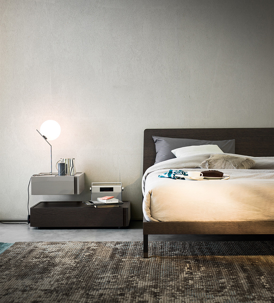 Teo - кровать с деревянным каркасом минималистских и современных форм, с двумя вариантами платформы.Панель головной спинки может быть “одета” в мягкий, прошитый чехол, предусмотренный в многочисленных вариантах отделки в соответствии с набором образцов.Кроме того, предусмотрен вариант с контейнером в платформе “P18/P24/P22”.