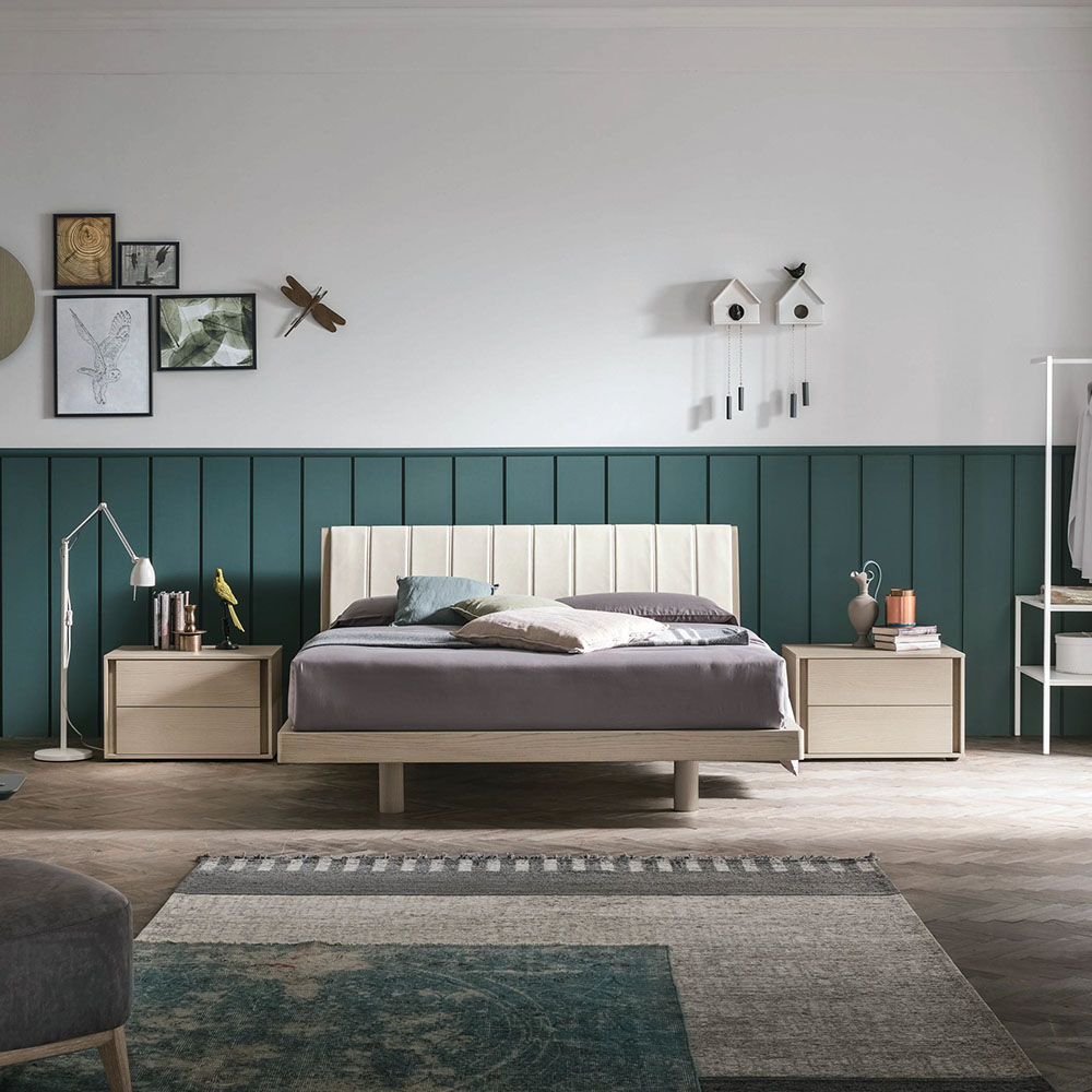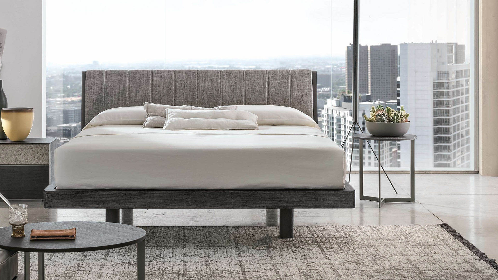 Тканевое или кожаное покрытие оформляет изголовье, подобно драпировке, превосходно сочетаясь с деревом. Вертикальная строчка придает кровати роскошный вид, выявляя в деталях мастерское исполнение.