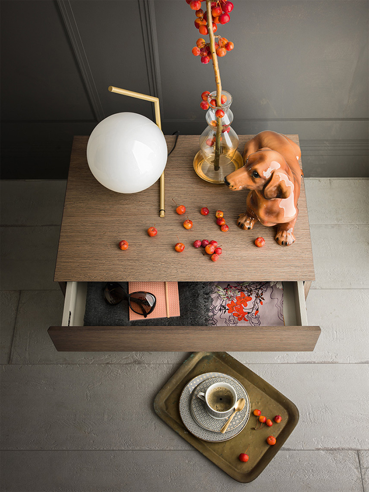 Линейные и стройные прикроватные тумбочки, комоды и серванты используют «узкое отверстие» в качестве фиксатора для легкого открывания.